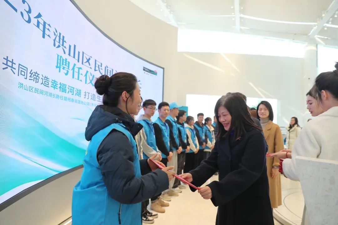 12月24日下午,“共同缔造幸福河湖 携手打造宜居洪山”洪山区民间河湖长聘任暨杨春湖湿地公园(东区)生态研学基地揭牌仪式在杨春湖湿地公园举行。在市河湖长制办公室指导下,区政府职能部门和高校、企业三方联动,全力推进碧水保卫战“幸福河湖共同缔造”行动,以良好河湖生态促进城市环境品质提升。