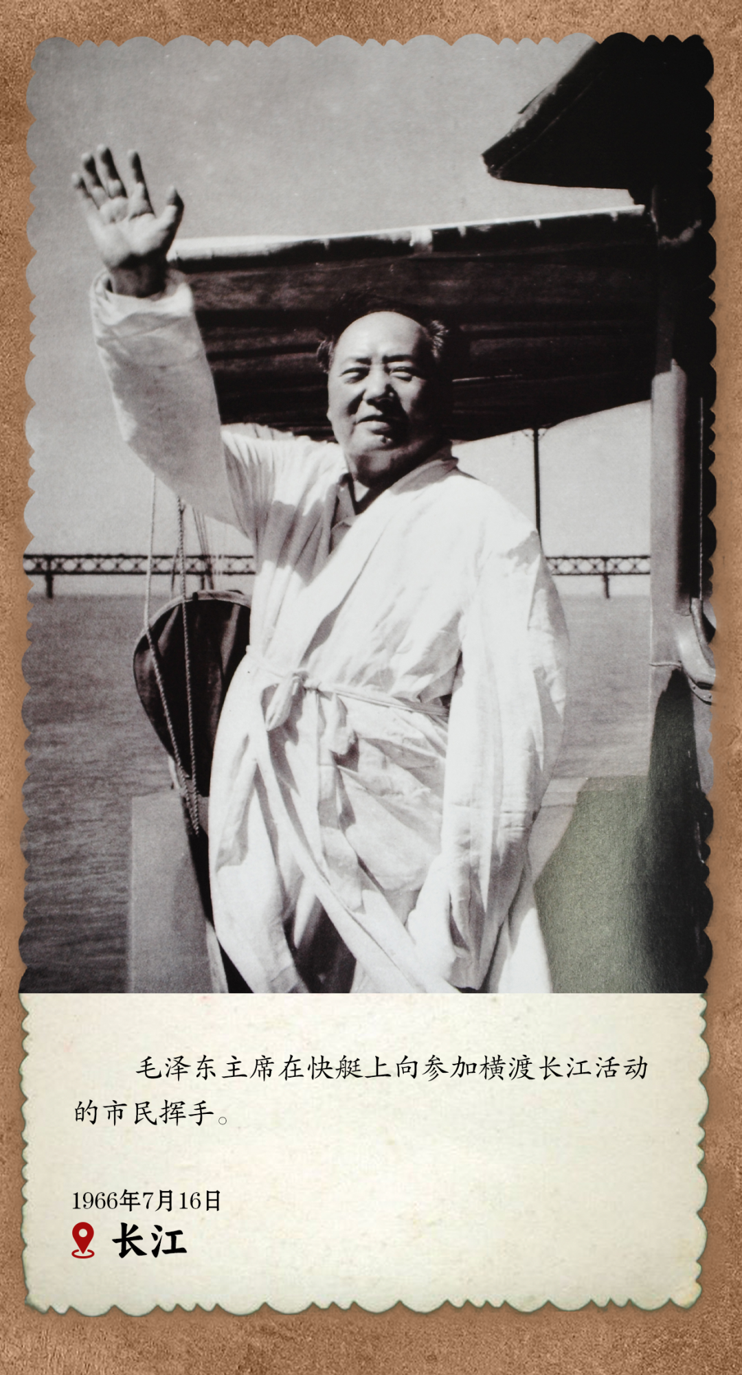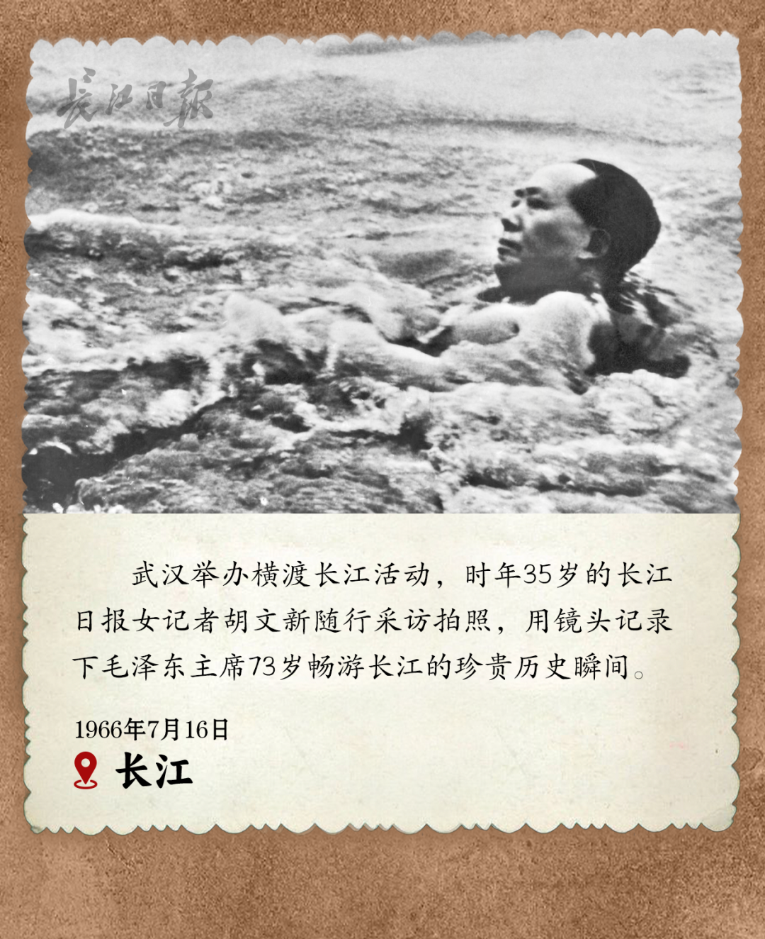 毛泽东酷爱游泳,最钟情长江畅游。最后一次在武汉畅游长江时,毛泽东已经73岁高龄。那次他冒着5级大风下水,游了1个多小时上岸。至今,武汉渡江节已举办48届,是对这位伟人的纪念与缅怀。走向国际的渡江节,如今在世界上的影响越来越大。