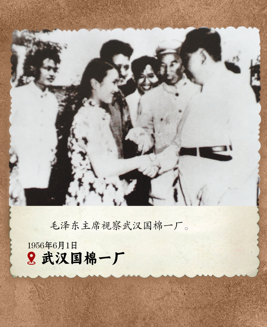 在武汉国棉四厂视察时,毛泽东告诫领导干部,不能老待在楼上,每天都要下去转一转、跑一跑,去深入实际、接触群众。