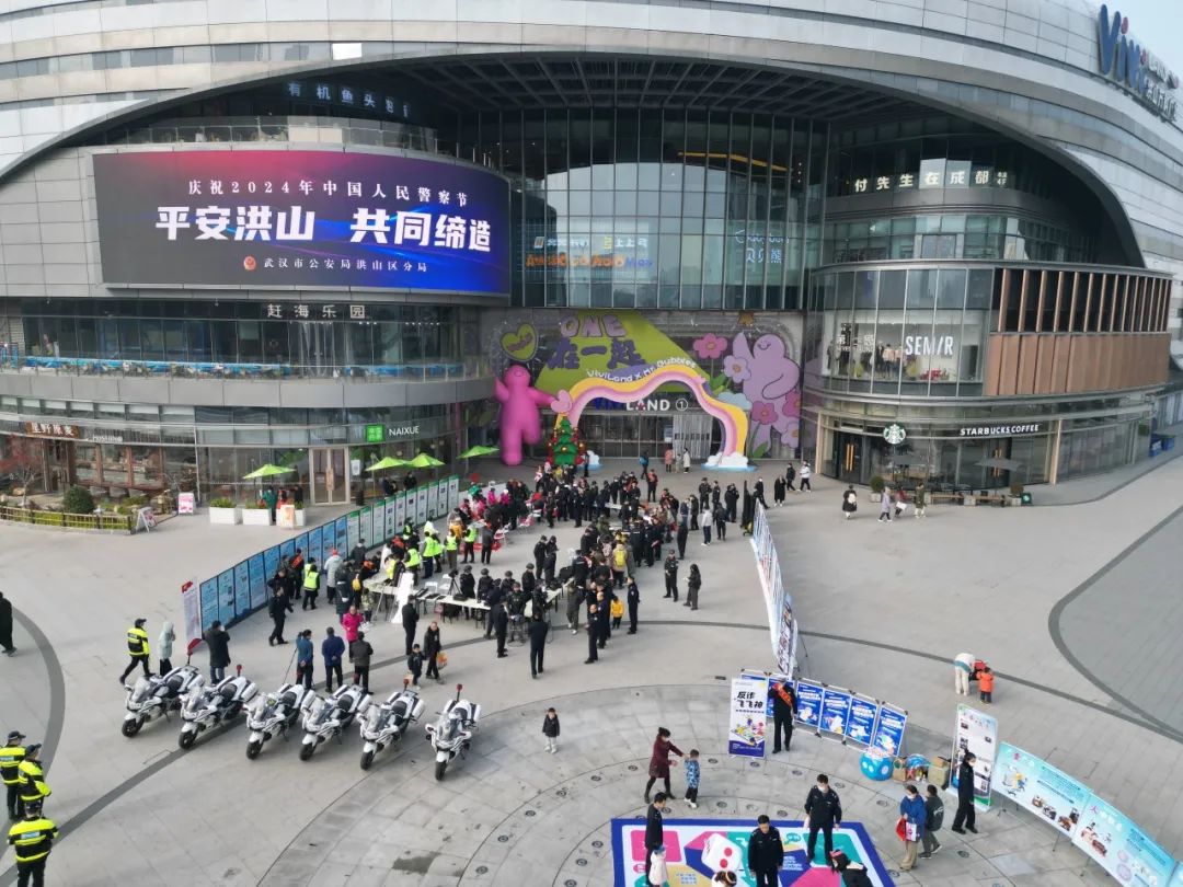1月6日上午,在第四个中国人民警察节即将到来之际,武汉市公安局洪山区分局在洪山万科广场隆重举行“平安洪山 共同缔造”警察节户外宣传活动,吸引了广大群众踊跃参与,气氛热烈。