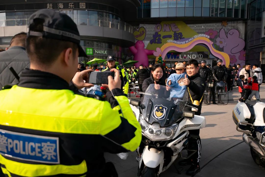 同样拥有十足人气的,还有一排闪烁着警灯的汉警快骑,平时穿行在街面疏导交通、处置各类现场事故的快骑队员们身着帅气的快骑服,耐心给现场市民讲解交通安全知识,并与在场群众合影留念。