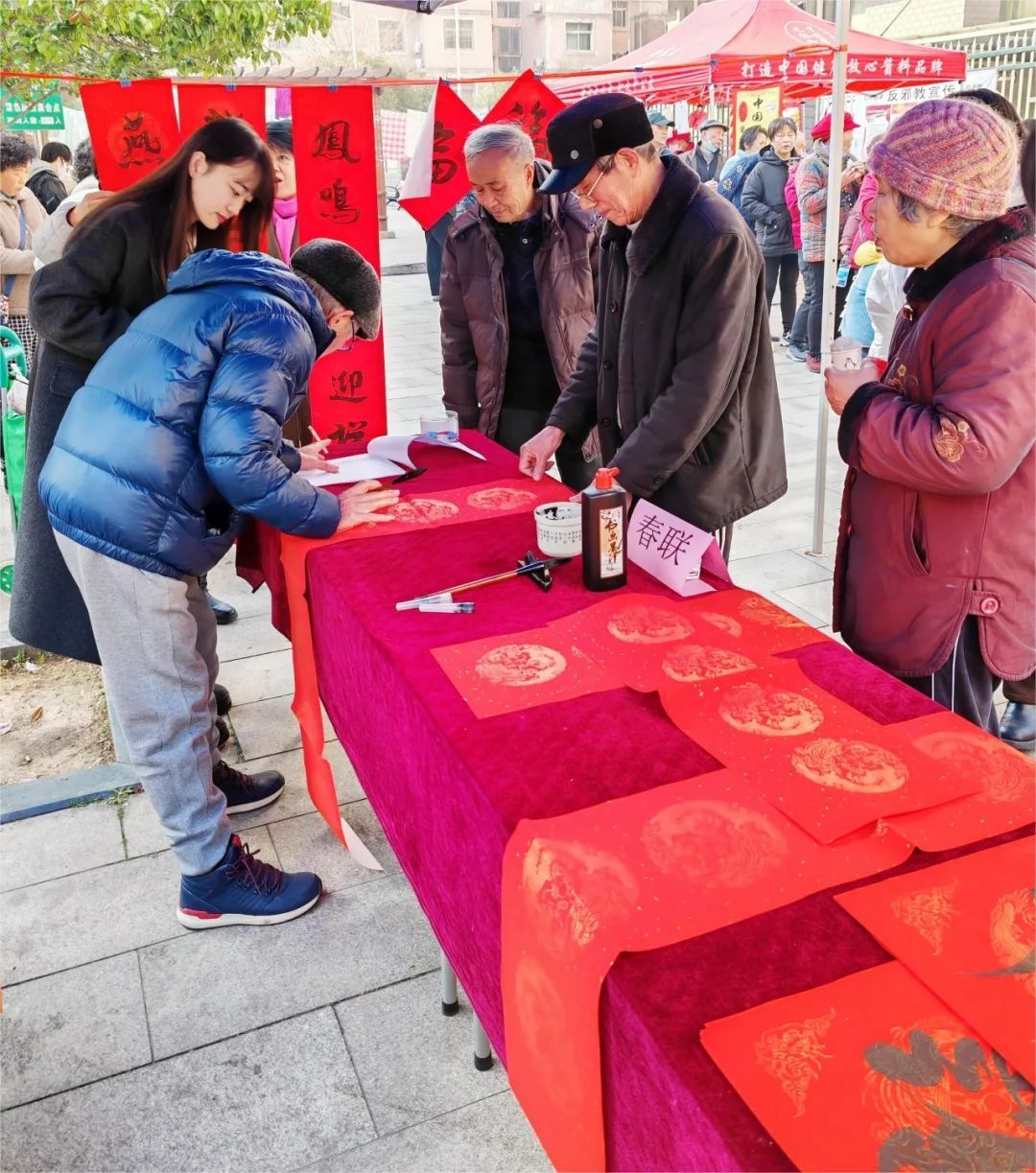 春联摊位墨香弥漫,吸引着老年朋友们围观,只见书法老师们挥毫泼墨、龙飞凤舞,创作个性化春联作品。一对对寓意祥和、载满祝福的春联,把浓浓的年味和新春的祝福送到居民手里,大家的喜悦之情溢于言表。