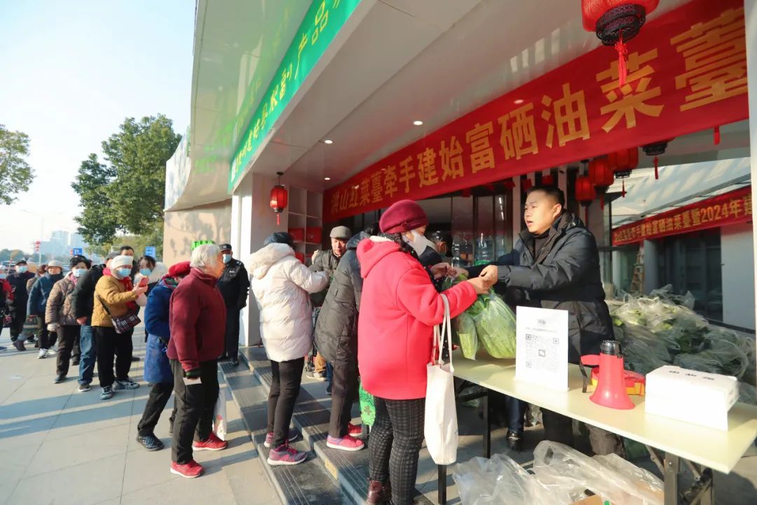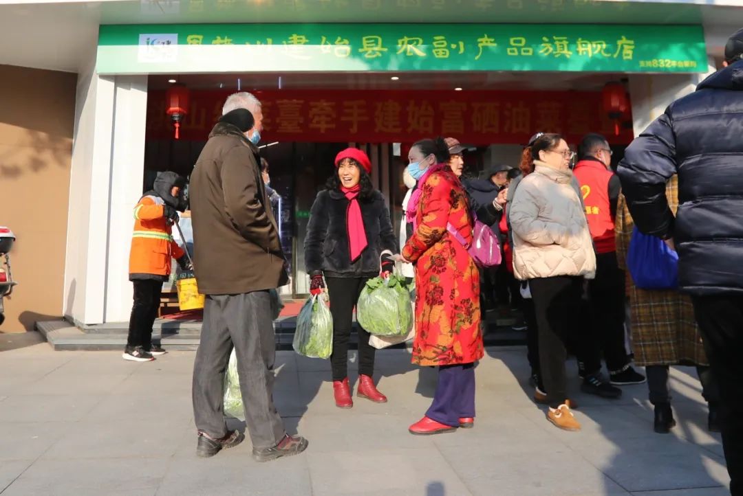 春节临近,筹办年货是一件颇具仪式感的事情。1月28日上午,在位于珞狮路丽岛紫园的洪山区消费帮扶建始县农旅体验馆门前,人头攒动、热闹非凡,由建始县感恩回馈的1万斤富硒油菜薹浓情赠送。辖区居民排起长龙,或领取油菜薹,或置办特色年货,烟火气里年味升腾,洪山建始情谊更浓。
