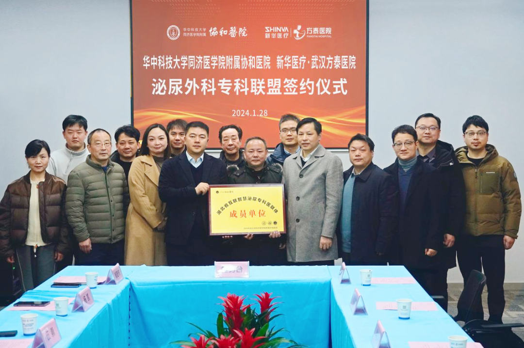1月28日,在洪山区卫生健康局的见证下,华中科技大学同济医学院附属协和医院(以下简称“武汉协和医院”)与新华医疗·武汉方泰医院签订泌尿外科专科联盟并授牌。双方将携手共建,推进方泰医院泌尿外科特色专科建设,助力60余万南湖居民在家门口享受国家级优质医疗资源。