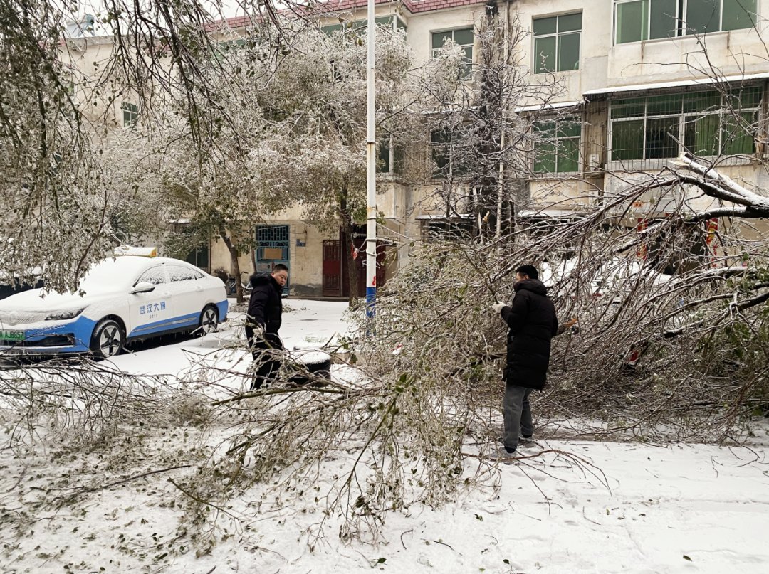 “小区主干道上有大树倒伏,需要支援。”2月4日清晨6时30分许,洪山区天兴乡“美丽天兴”工作群里,绿岛小区管委会党支部书记郭汉香发出的一张大树倒伏的照片引起广泛关注,随即吹响该乡新一天融雪除冰工作的冲锋号。7时不到,四五名工作人员就赶到了现场,大家锯的锯、抬的抬,快速清理出一条安全通道。