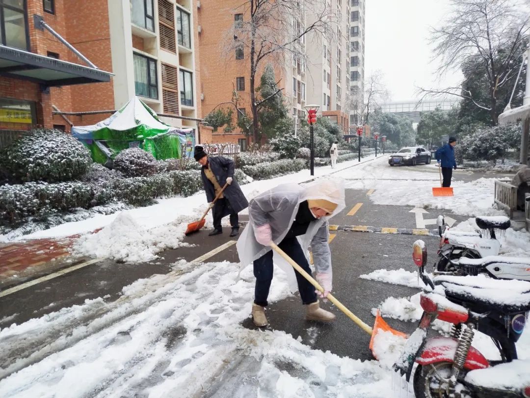 “雪情就是命令,不光要快,还得扫好。”2月4日上午7点,洪山区张家湾街道清江锦城社区工作人员、物业人员、社区党员、志愿者和居民一起积极投入清雪防寒工作,确保居民出行畅通。