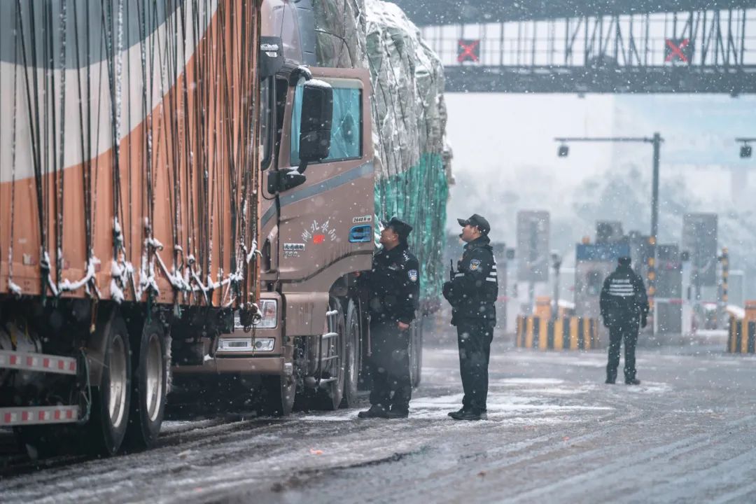 “恶劣的天气谁都不愿看到,高速封闭也是为了大家的安全,您有什么困难可以跟我们说,收费站有饮用水。”大市场4公里外是青郑高速武昌收费站,高速公路因大雪封闭,造成不少货车滞留在高速路口。分局张家湾检查站的民警挨个询问滞留的货车司机,并提供帮助。
