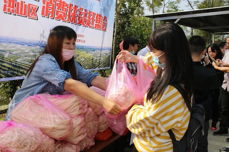 循着村民们的吆喝声,一抬头,各式各样的特色产品映入眼帘:诱人的闷罐肉、精工细作的挂面、豆丝,品类繁多的茶叶,以及健康绿色的油茶籽油等等,都是在洪山区驻村扶贫工作队大力推进产业扶贫后,取得的丰硕成果。