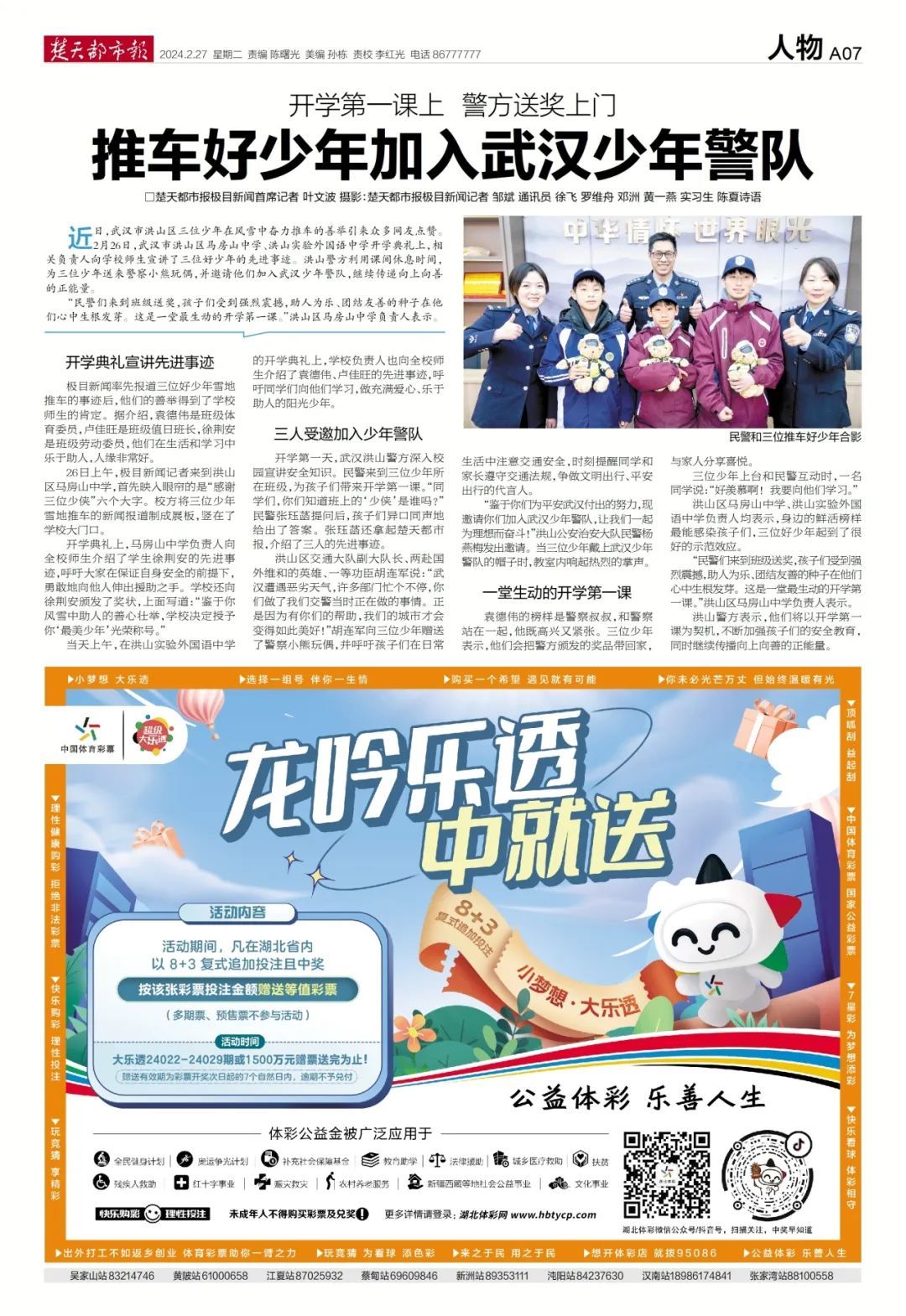 并邀请他们加入了武汉少年警队