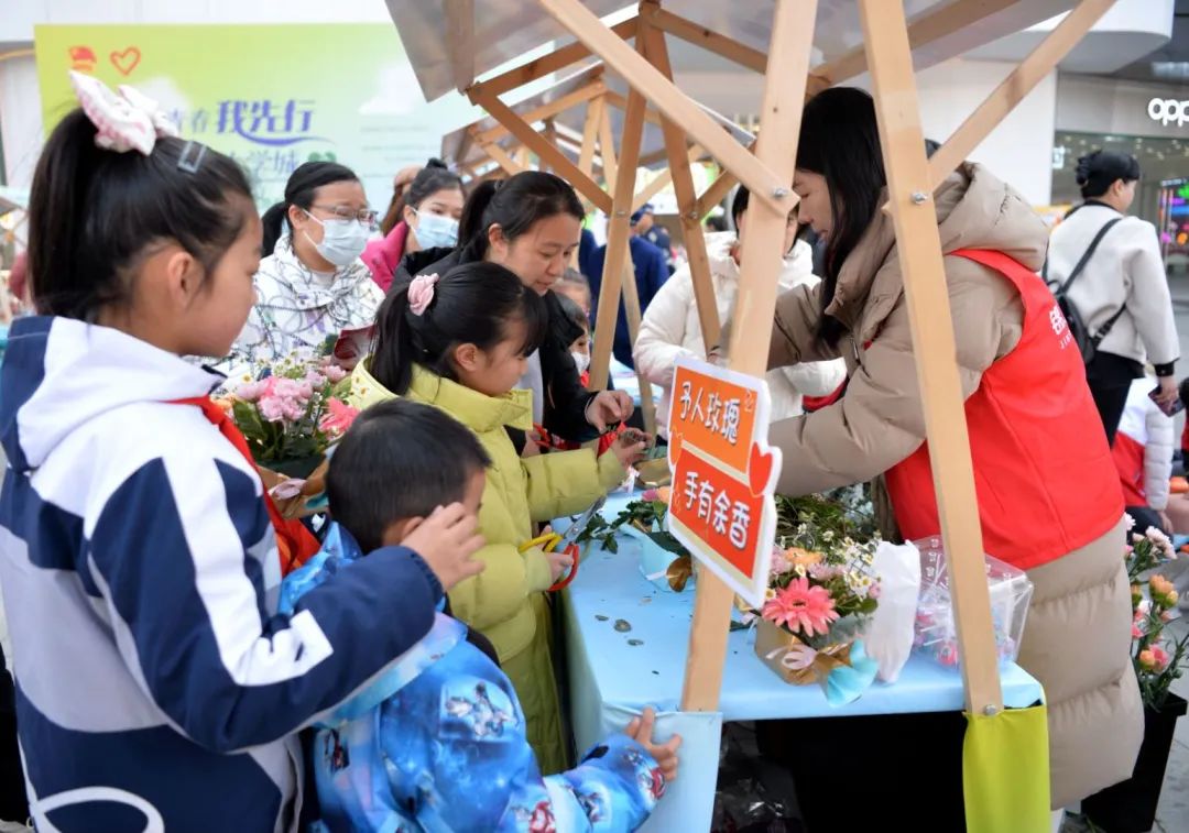 区城管执法局的“燃气知识知多少”知识问答大转盘、区税务局的“税”惠春风暖洪山、洪山统筹发展投资有限公司的“保障性租赁住房服务”、洪山区匠客文化发展中心的“国风剪纸”教学,珞桂锦上花文化发展中心的“巧手插花”……14支志愿服务团队使出浑身解数,创新服务和互动形式,将一份份关怀、一条条知识,送到居民手上。