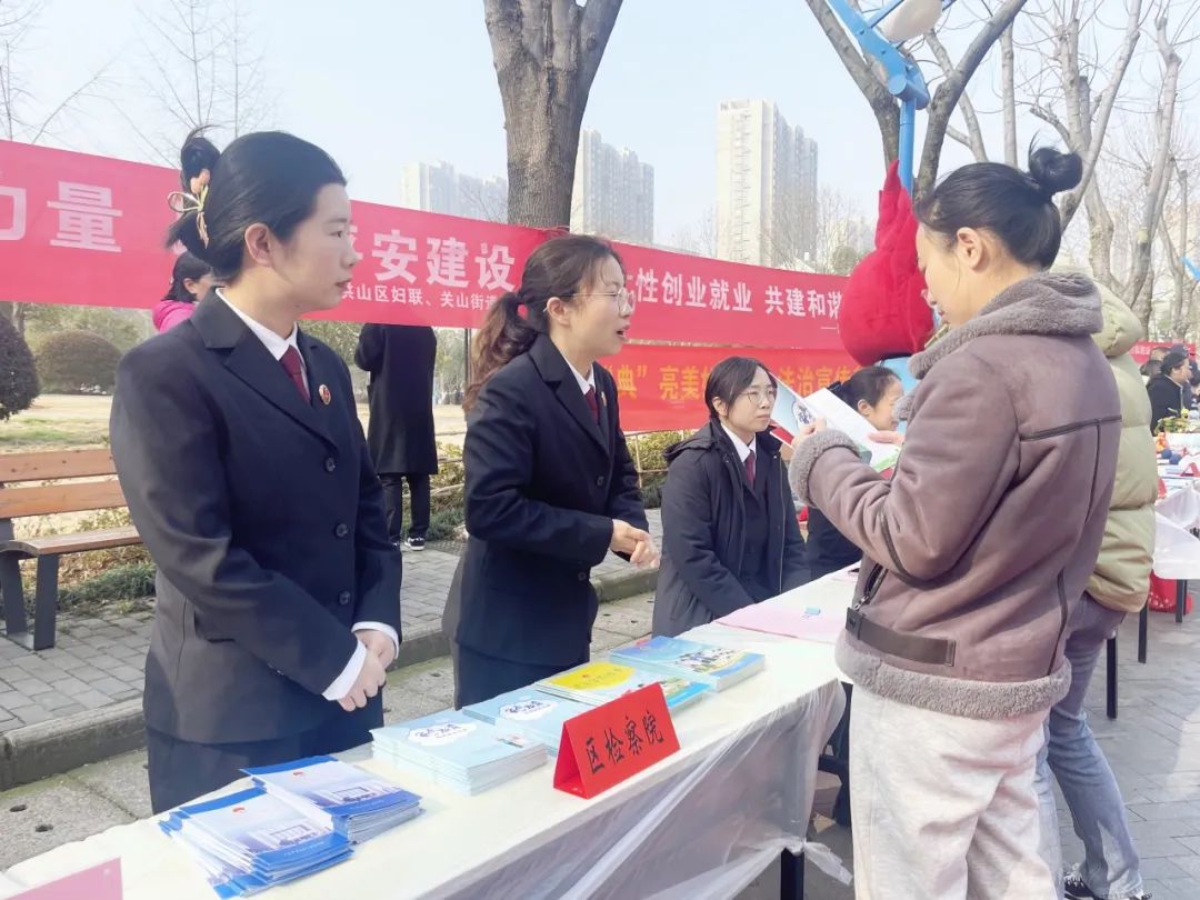 3月7日上午,洪山区以“巾帼促和谐 共建幸福家”为主题,在关山荷兰风情园,举办大型“三八”维权周活动,区妇联携手区检察院、区法院、区司法局、区卫健局、区应急管理局、市自然资源和规划局洪山分局 、关山街等多部门,组团为辖区广大妇女同胞送健康、送知识、送服务。