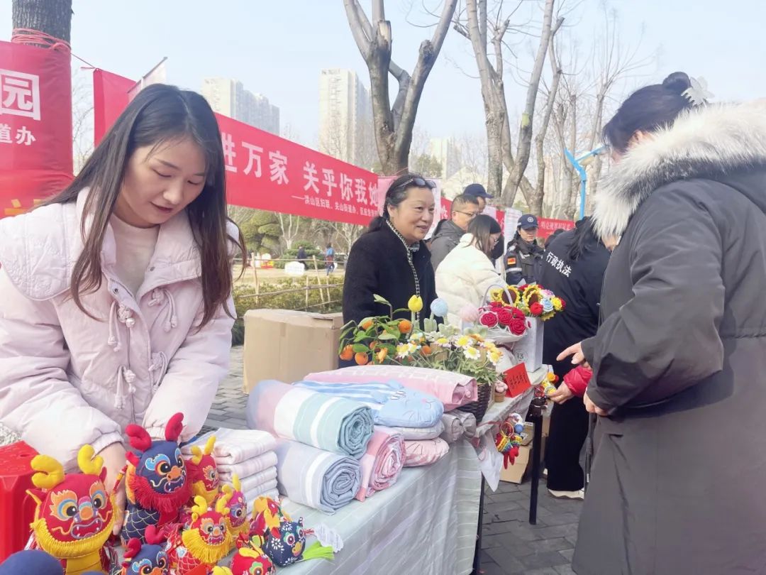 市自然资源和规划局洪山分局派出业务骨干,为市民普及不动产登记知识,增进市民对不动产登记政策法规和业务办理的了解,向居民发放宣传材料,并提供咨询服务。百布堂、陈华工作室、指舞线非遗拼布等集中展示了女性创业者的特色作品。