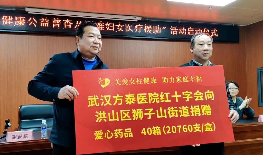 启动仪式上,武汉方泰医院红十字会向狮子山街道捐赠包括外用药、中成药、退热栓剂在内的价值近23万元的爱心药品40箱,向辖区困难妇女发放关爱大礼包200份,提供免费疾病普查名额2000个,手术援助名额50个。同时,武汉方泰医院还将在各个社区组织开展多场次的专家义诊、健康讲座、急救培训等主题活动,把健康服务全方位下沉,送到居民家门口。