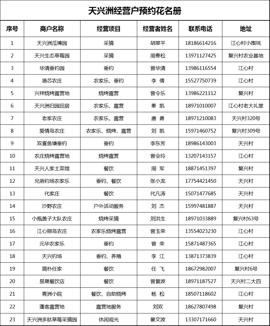 汉口方面来车可以直接上天兴洲大桥下匝道;武昌方面来车需经天兴洲大桥至汉口折返再从桥上下匝道,出匝道后即可上环洲道路往洲头洲尾行驶。目前,自驾方式前往需电话预约,详见名单: