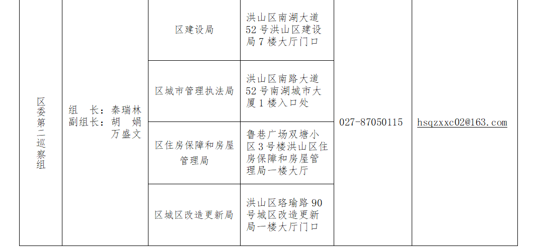 按照省市区三级联动统一部署,本轮区委巡察将对区发展和改革局、区科学技术和经济信息化局、区建设局、区水务和湖泊局、区商务局、区住房保障和房屋管理局、区城区改造更新局、区园林局、武汉市自然资源和规划局洪山分局、武汉市生态环境局洪山分局、武汉市公安局洪山分局等11家区直、垂直管理单位党组(党委)开展专项巡察。对2023年开展常规巡察的区城市管理执法局、区文化和旅游局、区应急管理局等3家单位开展巡察“回头看”,突出对落实先行区建设部署和整改情况的监督检查。