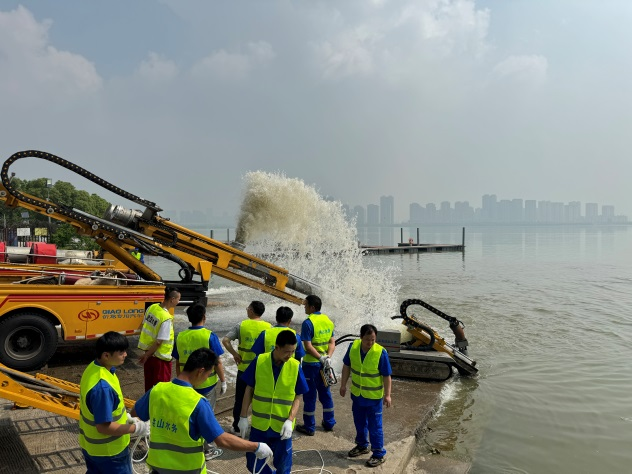 4月26日,长江水文网显示,长江武汉关水位已达21米。为做好防汛抗旱准备,确保现有抽排设备在城市排涝过程中“拉得出、用得上、起作用”,洪山区水务和湖泊局在青菱渔场黄家湖水生态维护基地和黄家湖环湖路分别开展了排渍抽排演练。