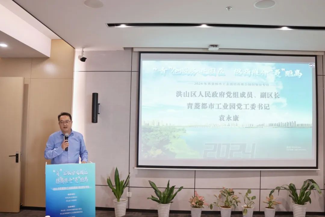 副区长袁永康在致辞中表示,青菱地区作为洪山区的重点发展区域,拥有丰富的自然资源、良好的投资环境、特色的惠企政策,万亩工业用地为企业大展拳脚提供充足空间,邀请企业来青菱寻找发展商机,共谋合作大业。