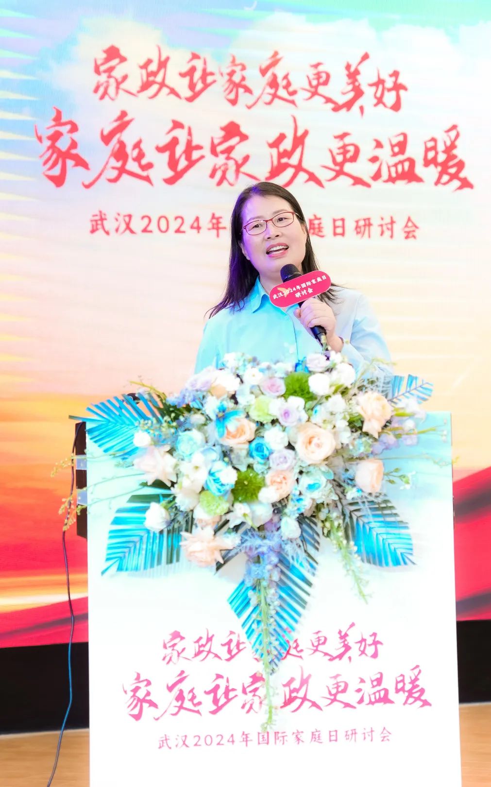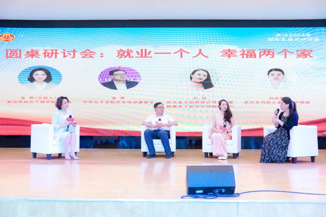 5月15日下午,2024武汉国际家庭日研讨会在武汉城市职业学院举行。来自北京、武汉两地的巾帼家政企业负责人及高校、行业领域相关专家学者、家庭代表、家政员等近300人参加此次会议。