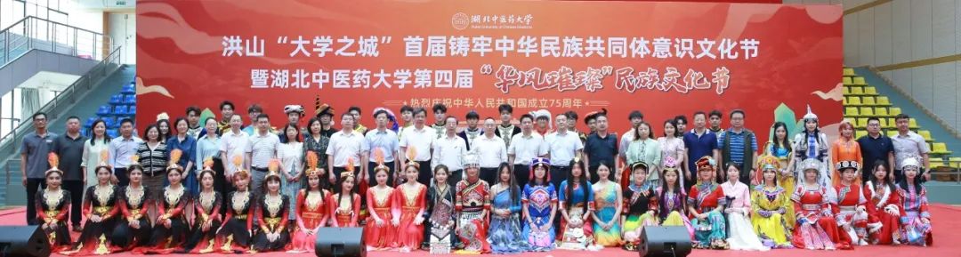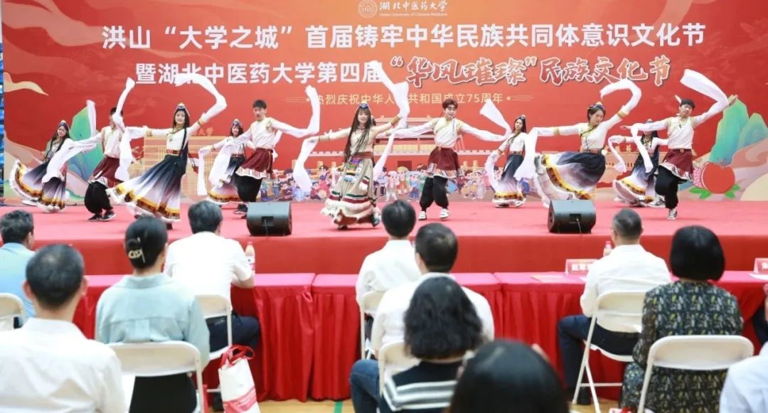5月19日,洪山“大学之城”首届铸牢中华民族共同体意识文化节暨湖北中医药大学第四届“华风璀璨”文化节在湖北中医药大学黄家湖校区体育馆举行,1000多名师生共享文化盛宴。省民宗委副主任赵军章,市委统战部副部长、市民宗委主任朱绍华,湖北中医药大学党委副书记张子龙,洪山区委常委、统战部部长李田出席开幕式。