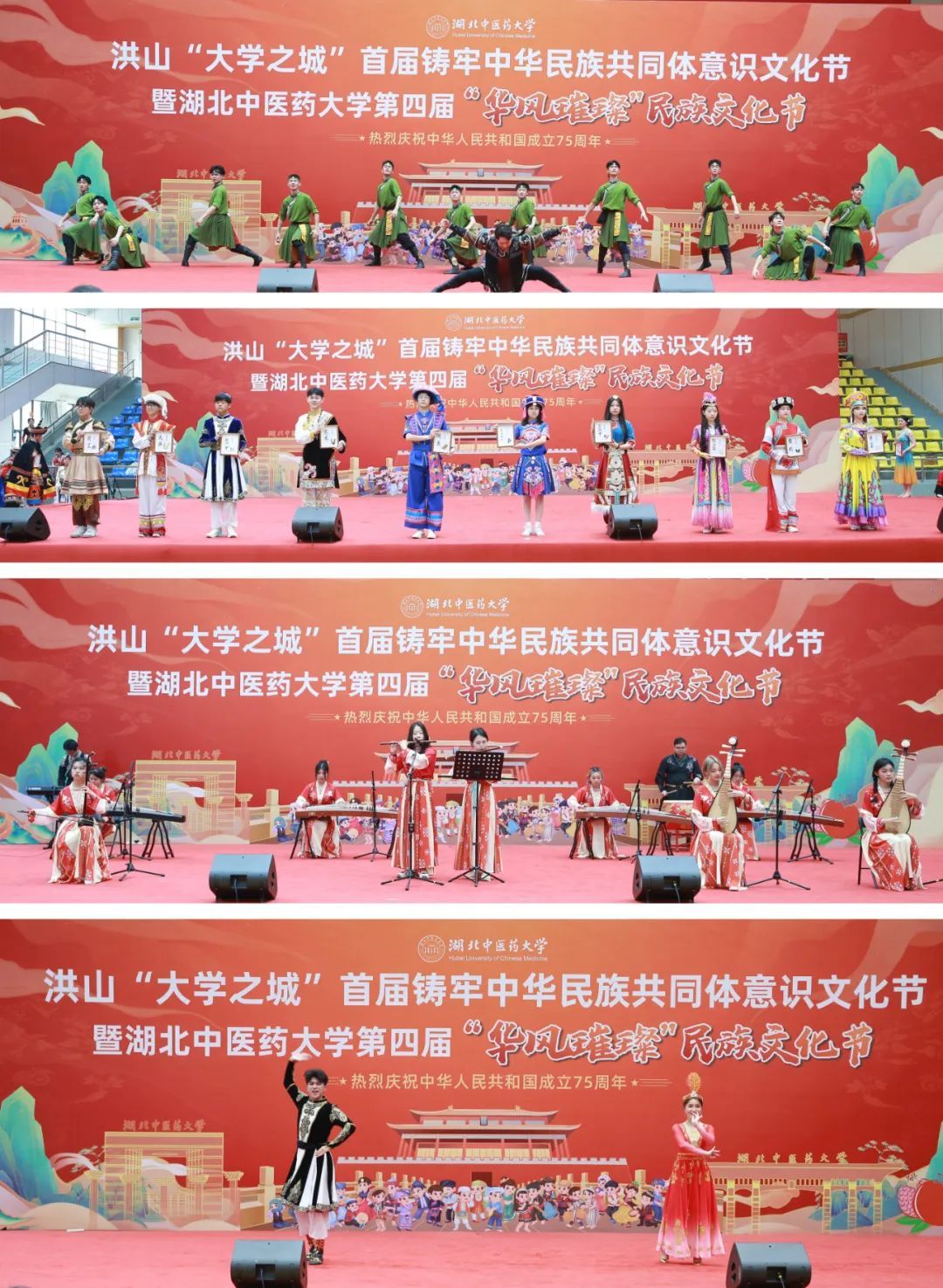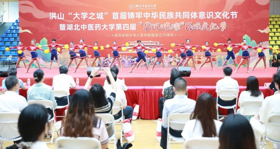 开幕式上,五所高校的学子为广大师生带来了精彩纷呈的节目。武汉体育学院的啦啦操《聚力同行》展现了青春活力和团结精神;武汉科技大学的民乐合奏《九州同》以悠扬的旋律表达了中华民族的多元和谐;中南民族大学的舞蹈《马背酒歌》展示了浓厚的民族风情;华中科技大学的男中音独唱《灯火里的中国》用深情的歌声传递了对祖国的热爱;湖北中医药大学的时装走秀《美美与共》和舞蹈《幸福的石榴籽》则分别展示了中华文化的魅力和民族团结的美好愿景。这些精彩的表演一次次把气氛推向高潮。