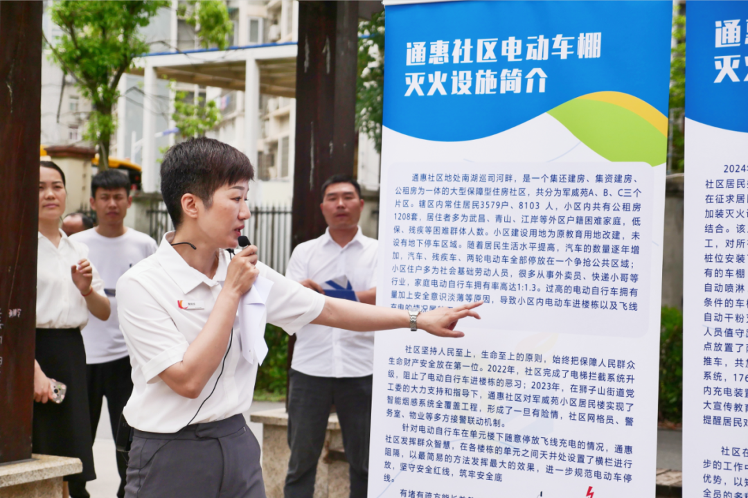 下午的培训不仅邀请了洪山消防救援大队主要负责人讲授社区消防安全管理,还组织学员前往狮子山街道通惠社区,现场参观学习电动自行车棚选址、建设标准、消防设备配备以及日常管理等。面对学员在参观学习中反馈的问题,区市场监管局、区城管执法局、区建设局、区房管局、区园林局、区民政局、洪山消防救援大队等单位的相关负责人及时进行了答疑解惑。