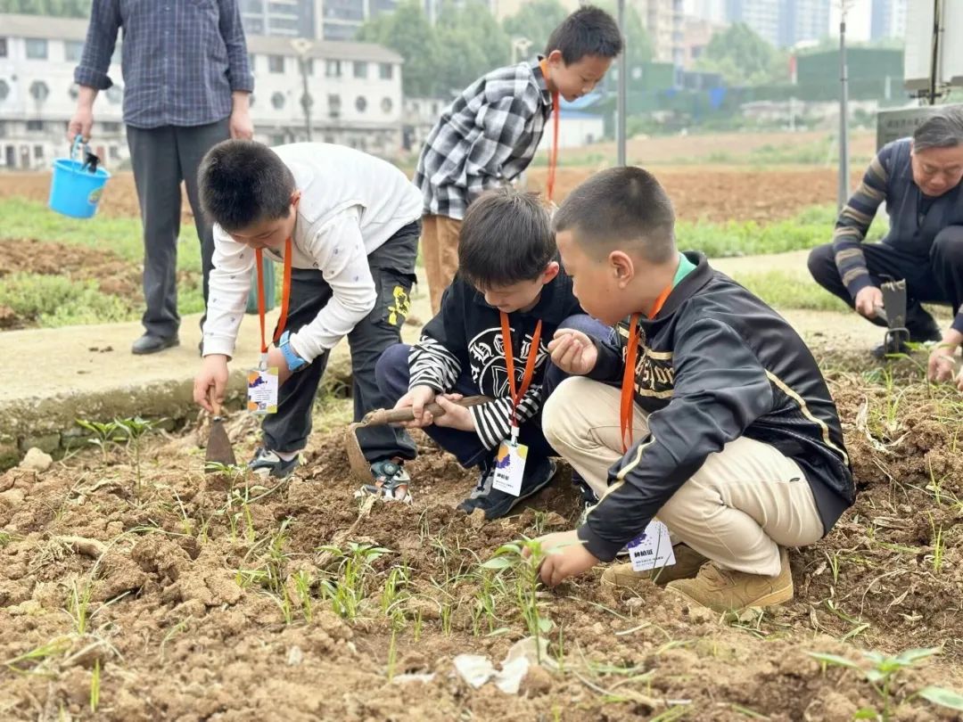 小满已过,夏日气息愈发浓厚。5月的暖阳下,洪山菜薹基地“鸿薹圃园”科普种植田里,辣椒苗、玉米苗、黄瓜苗早已冒头,一片葱茏秀色。浇水、锄草、施肥、插牌……来自洪山区武珞路小学的孩子们探秘蔬菜成长之旅,体会农民伯伯的劳作不易和粮食的来之不易,将“珍惜粮食”铭记在心。