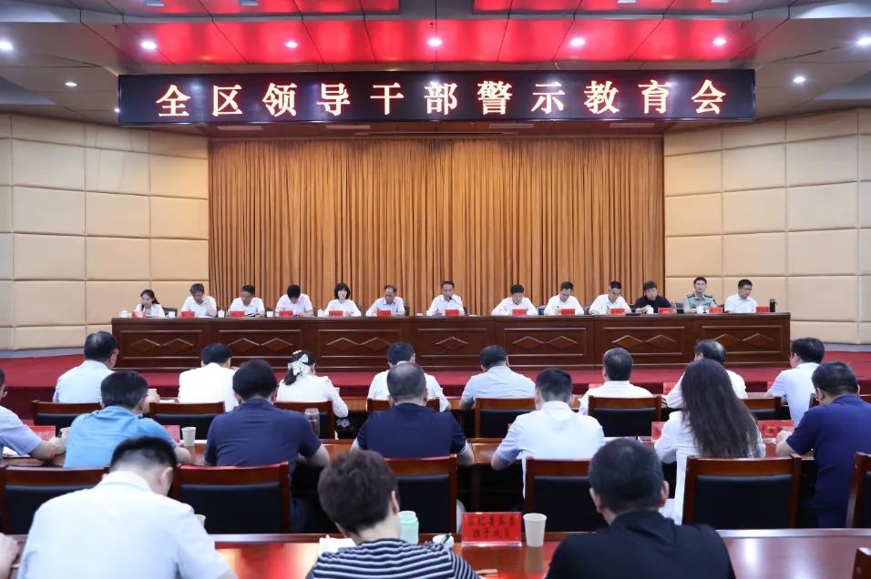 区委常委,区人大常委会、区政府、区政协领导班子成员,区法院院长,区检察院检察长等出席会议。与会同志集体观看了警示教育片。