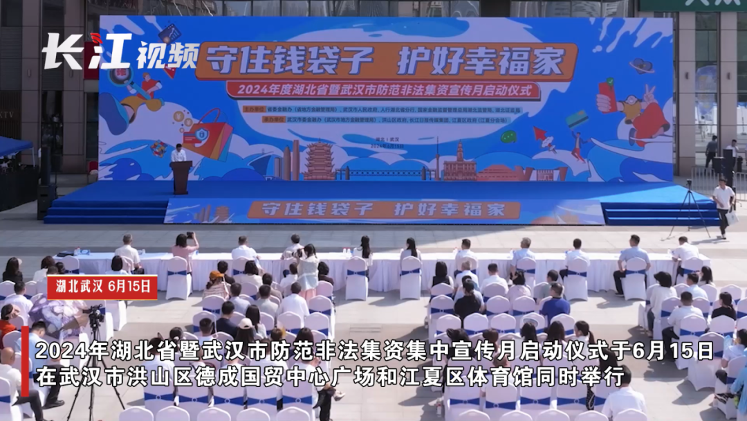 6月15日,2024年度湖北省暨武汉市防范非法集资集中宣传月启动仪式在洪山区和江夏区同时举行,长江日报大武汉客户端向全省同步直播。24名市民被聘为2024年度“防非轻骑兵”公益宣传讲师。