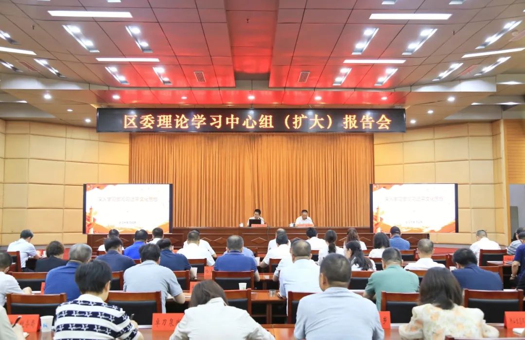 6月19日,洪山区委理论学习中心组(扩大)报告会举行,旨在深入学习贯彻习近平文化思想,全面贯彻落实党的二十大关于文化建设的战略部署,切实增强做好新时代宣传思想文化工作的责任感使命感,更好担负起新的文化使命,为奋力推进中国式现代化洪山实践提供坚强思想保证、强大精神力量、有利文化条件。