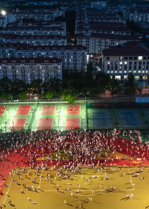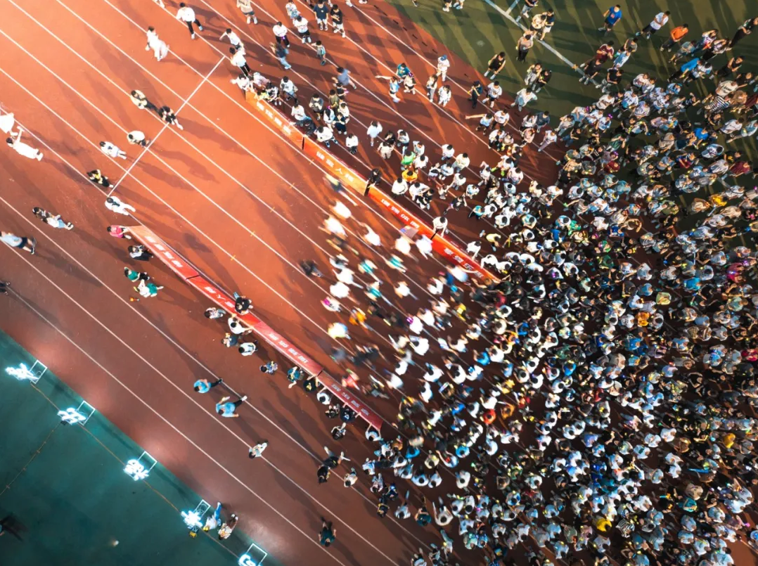 6月15日,华中农业大学以“向幸福出发”为主题的荧光跑毕业季活动和“水花绽放”的祝福活动在东运动场举行。