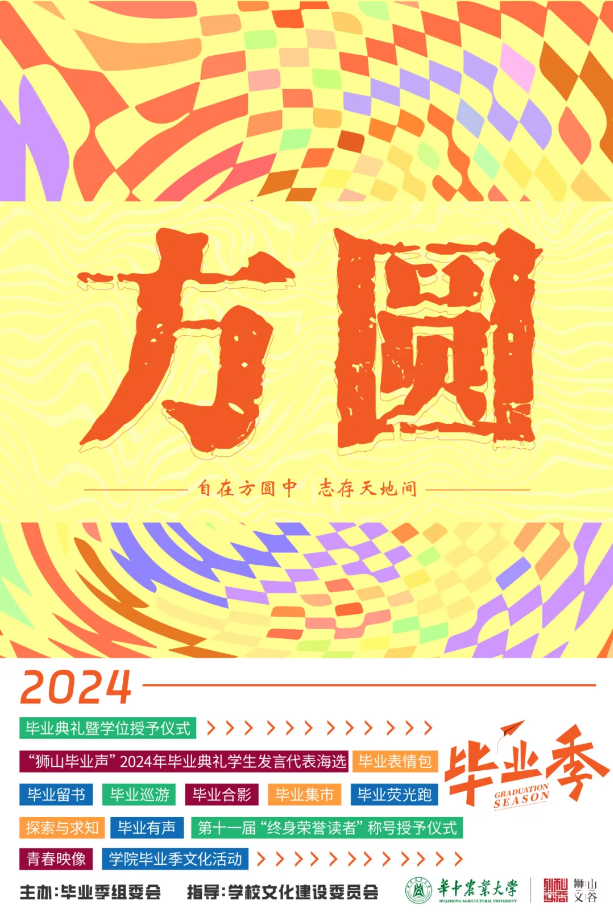 除此之外,华中农大还精心准备了异彩纷呈的毕业季活动为2024届毕业生们壮行。毕业表情包、毕业留书、毕业合影、毕业集市、探索与求知、毕业有声、青春映像、第十届“终身荣誉读者”称号授予仪式等文化活动。