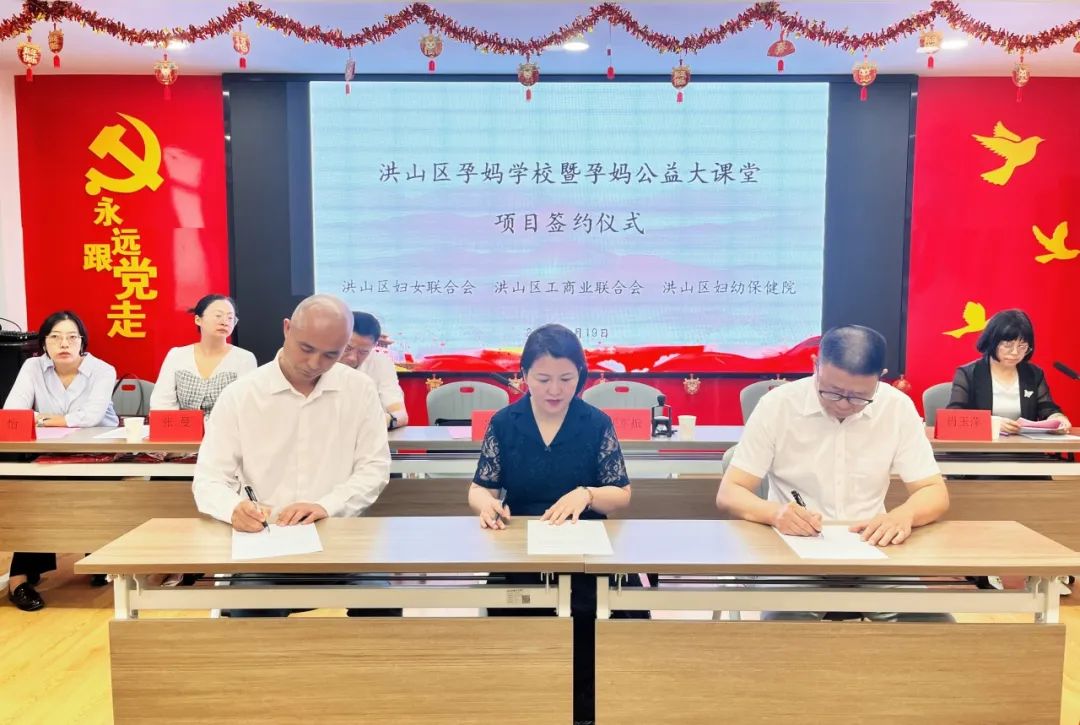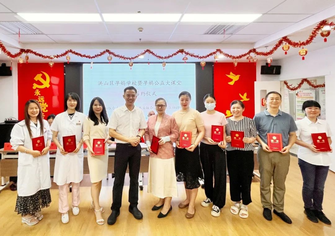 6月19日上午,洪山区孕妈学校暨孕妈公益大课堂签约仪式在区妇幼保健院举行,授课专家、孕妈、“爱孕帮帮团”巾帼志愿者代表70余人参加活动。