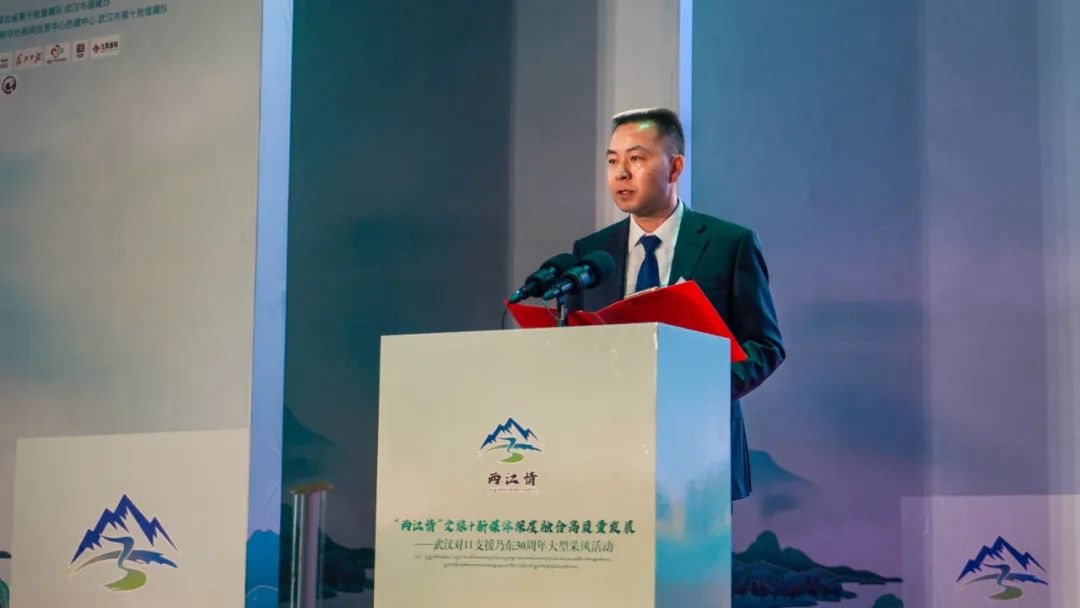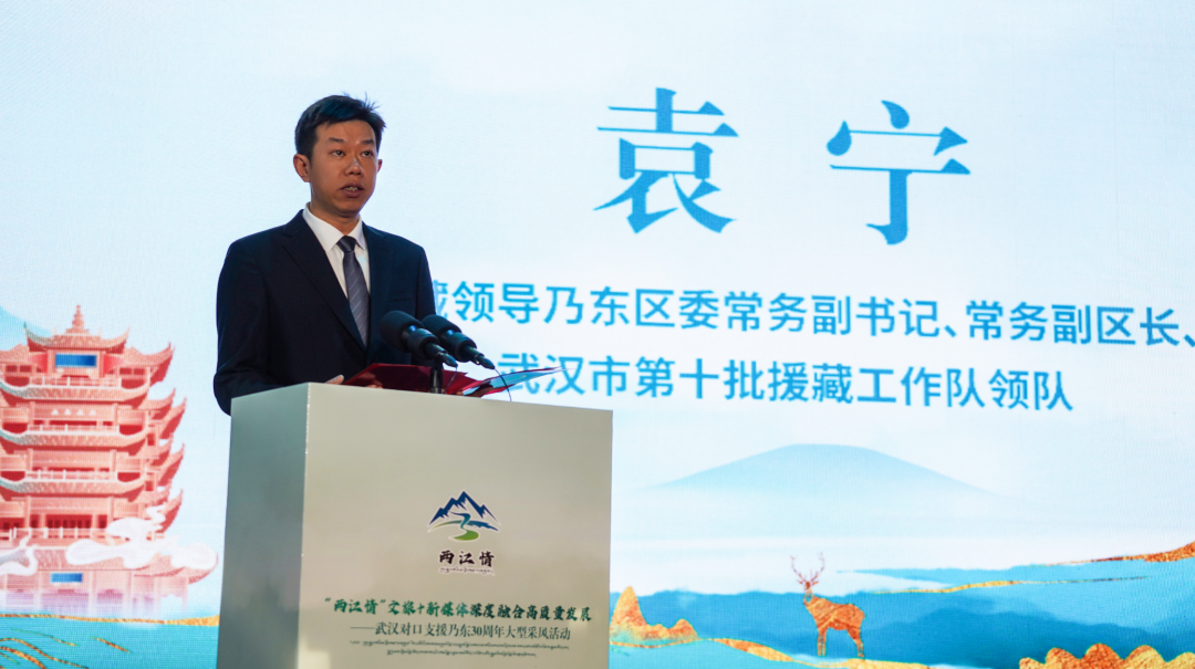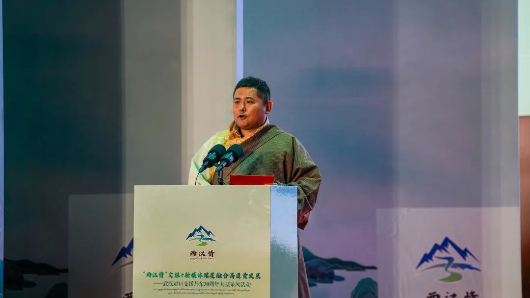 在慷慨激昂的音乐声中,山南市委常委、乃东区委书记张维上台致辞。他在致辞中回顾了武汉与乃东30年来的深厚情谊,并对武汉市的无私援助和大力支持表示最诚挚的谢意。他指出,武汉市对口支援乃东30年来,武汉市委、市政府始终站在党和国家战略全局的高度,坚决贯彻落实习近平总书记和党中央关于对口援藏工作的决策部署,怀着对乃东各族干部群众的深厚感情,向乃东输送了新观念、新知识、新技术,实现了由干部援藏向智力援藏、项目援藏向产业援藏、单项对口支援向加强两地交往交流交融的“三个转变”,形成了全方位、宽领域、多层次的援藏模式,两地各族干部群众越走越近、越走越亲,在武汉与乃东之间浇筑了一条割不断的民族大团结纽带!他希望武汉的媒体朋友们要走进乃东、了解乃东、融入乃东,挖掘雅砻文化、品味农耕文明,讲好乃东故事、展现西藏形象!