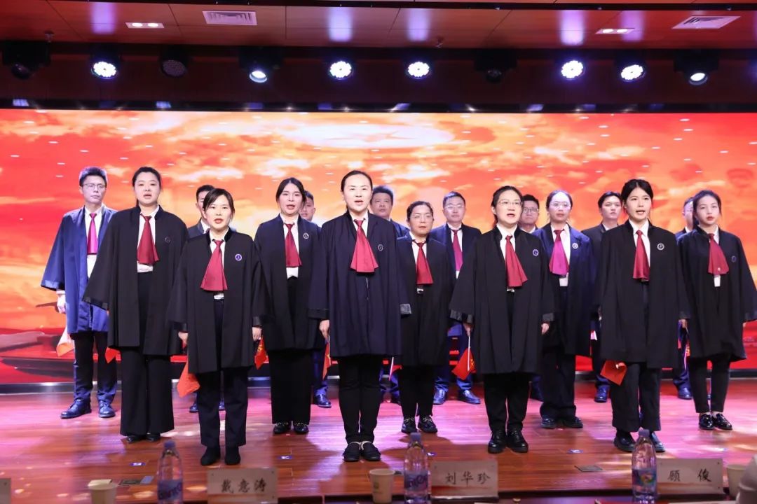 “起来,饥寒交迫的奴隶……”当《国际歌》激扬的旋律响起,拉开了音乐党课的序幕;“雪山低头迎远客,草毯泥毡扎营盘。”《过雪山草地》让人眼前浮现出长征中那一幕幕艰险的场面;齐声高唱的《没有共产党就没有新中国》是对党发自内心的感激……随着主讲人将一段段党史缓缓道来,伴随着《歌唱祖国》《我的中国心》《春天的故事》《我们都是追梦人》等或抒情或激昂的美妙音乐,在场听众仿佛集体经历了一场“梦幻穿越”,沉浸式地感受革命精神,汲取奋进力量。最后的律师大合唱《我和我的祖国》,将永不磨灭的红色激情和对党和国家的赤诚情感铭刻在心,也为本次活动画上了圆满的句号。