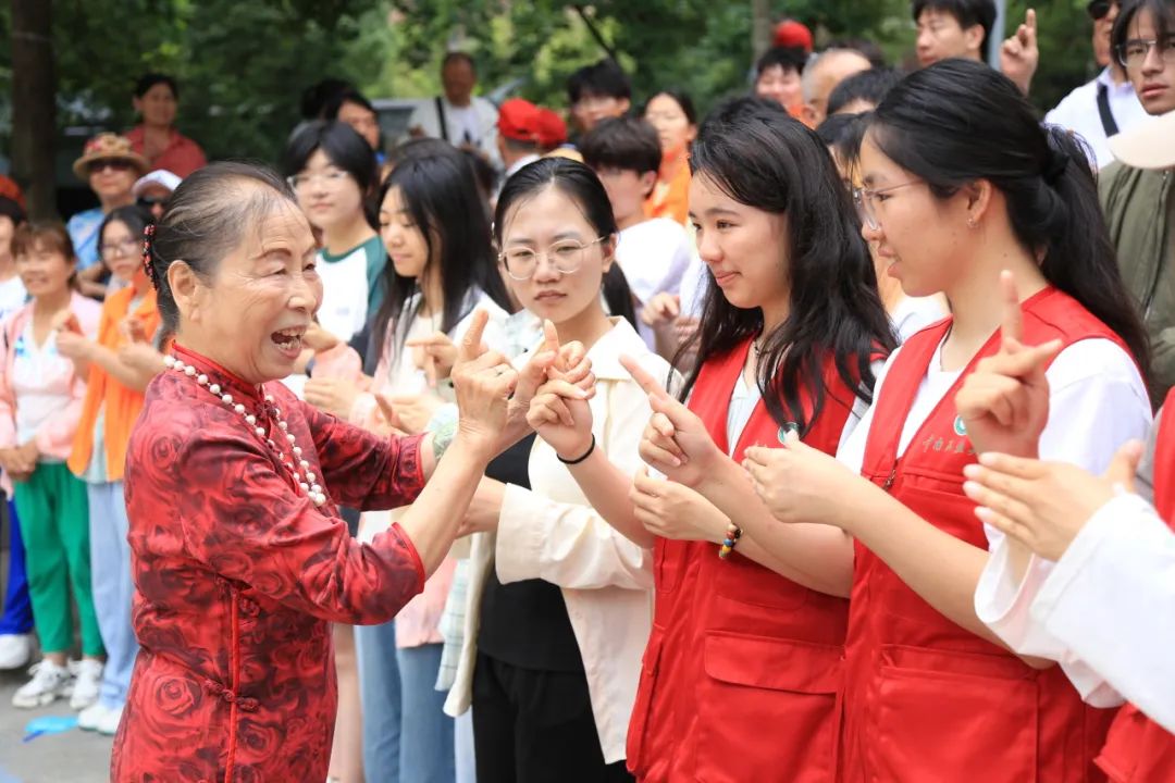 “我很舍不得潘淑文奶奶,我希望在离开武汉之前能够跟她有一张合影。”窦凌云表示。这也是她用实际行动来支持听障朋友们。大一时,窦凌云加入了华中科技大学的心语手语协会,第一次接触到手语。她跟着学长学姐来到洪山区手语园学习,一坚持就是四年。四年中,她认识了潘淑文老师和很多聋人朋友,和他们结下了深厚的感情。