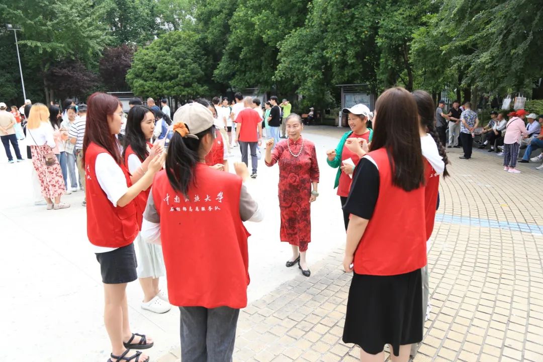 △潘淑文老人(前排左三)指挥学生跳舞结束后,众人合影(受访者供图)