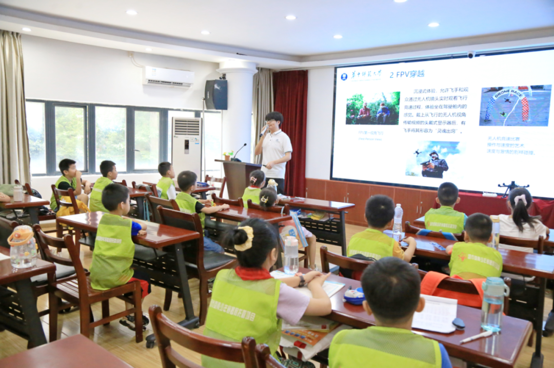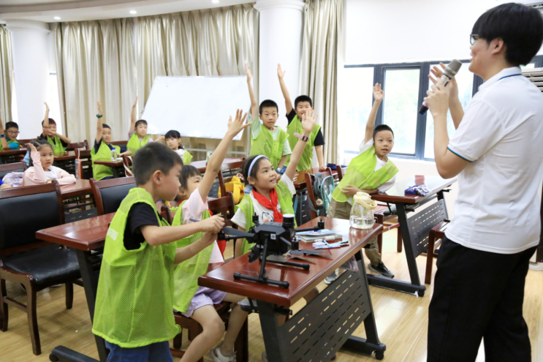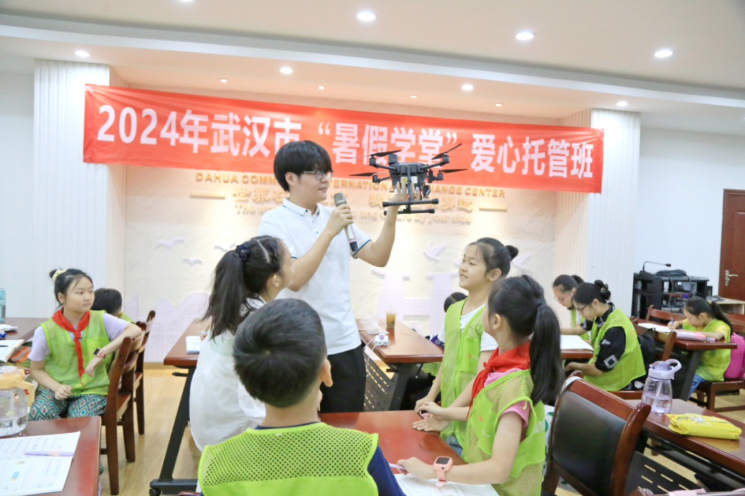 “等会儿有没有小朋友想去足球场上实操一下?”7月15日上午,在大华社区“暑假学堂”公益托管班内,正上演着一节生动有趣的无人机课程。来自华中师范大学的大学生现场讲解,屏幕上放映着无人机拍下的视频,台下的孩子们发出阵阵惊叹。