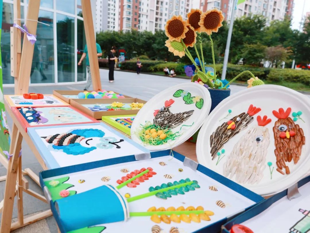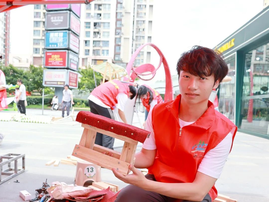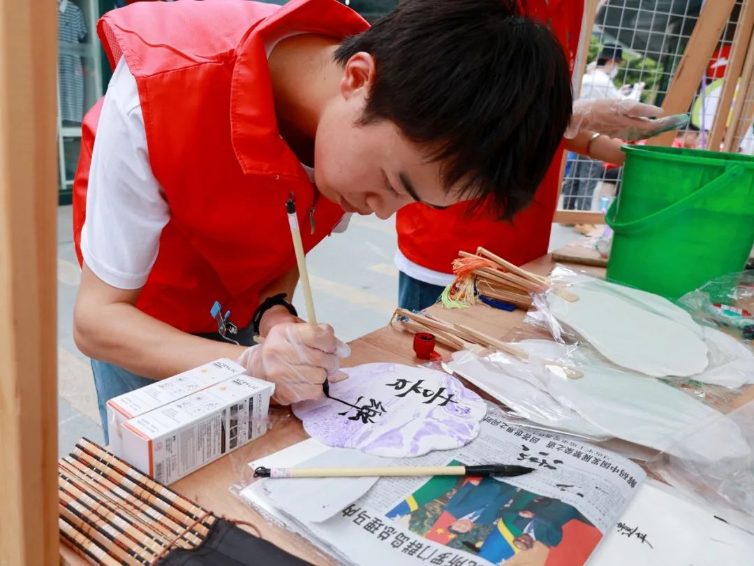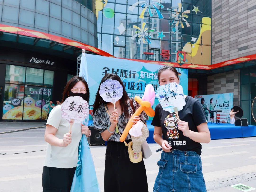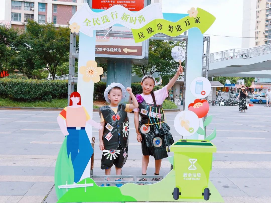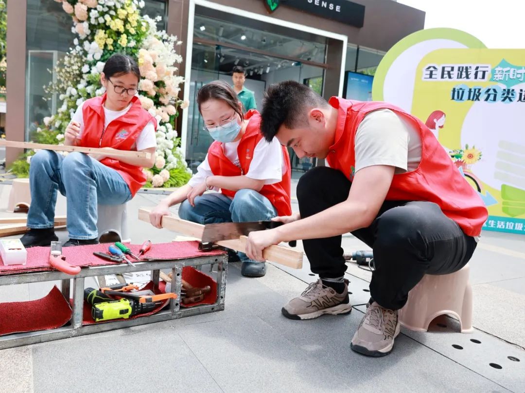 在环保漆扇制作区,同学们详细介绍原材料来源,并将“上岸”“平安喜乐”“未来可期”等居民们的美好愿望书写在漆扇上;在大件垃圾改造利用展区,垃圾分类指导员与同学们一起将大件垃圾制作成实用的小凳子;在diy衣物展区,许多小朋友现场试穿了彩色垃圾袋和废旧纸板制作的衣物,引得路人连连称赞......