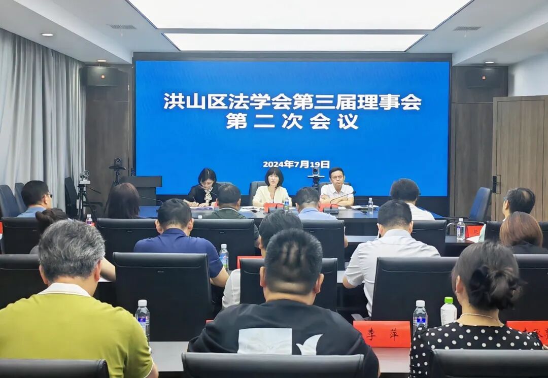 会议总结了区法学会第三届理事会换届以来的工作情况。自2023年3月换届以来,区法学会在区委的正确领导和市法学会的关心指导下,在新一届理事会带领下,紧紧围绕中心大局,充分发挥职能作用,把政治引领、服务决策、参政议政、组织建设等工作落到实处,为法治洪山、法治政府和法治社会建设注入强大法治动力。