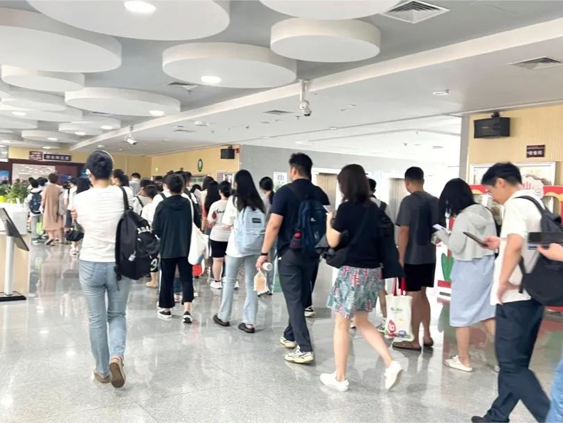 读者虽多,但秩序井然。记者看到,两层楼600个座位坐得满满当当。在四楼的综合阅览室,中小学生或大学生的读者居多,桌上则摆满了书籍、背包和茶杯,看起来像是“长期作战”。有带着耳机听课的,有写作业的,还有工作的,发现不少是孩子写作业,家长在旁边看书,一副“亲子共学”的温馨场面。在五楼的借阅区,大家都沉浸在书香和知识的氛围中,静享夏日的这份美好。