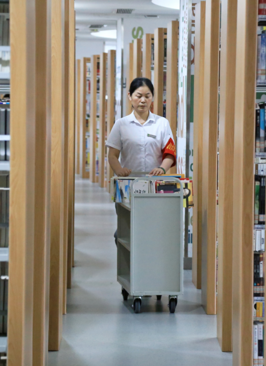 每天清晨,图书馆门前早早排起“长龙”,等待开门入馆。为了缓解馆内阅览座席紧张的实际问题,该馆在五楼的外借室和四楼的阅览自习区,均进行了精心的布局,在保证消防通道疏散畅通的前提下,新增加了座椅、条桌、沙发等家具,最大限度地增加空间使用率,尽可能地提供更多的阅读、学习座位。