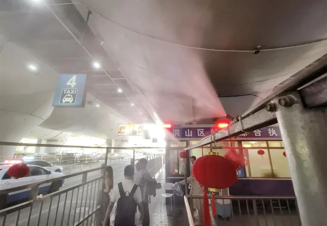 据了解,暑运期间,武汉火车站客流量增加,每日往返客流达23万人次,武汉火车站东广场公交车站及出租车候乘区,是人流量较大的两个区域。为给旅客创造清凉的出行环境,在高温来临前,综管办及时检修了喷雾降温系统,更换了四百米长的水管和五百八十多个喷头,全力为“夏日降温行动”做好保障。这些喷头将根据气温情况分时段进行自动喷雾降温,为旅客带来丝丝凉意。
