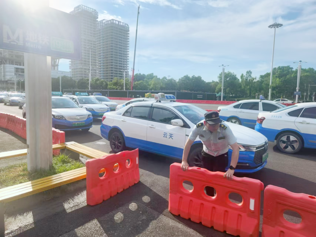 持续高温下,为减少出租车长时间排队现象,综管办及时将西广场开启作为临时出租车候客点,大大减少出租车在站区道路等候时间,同时也更方便旅客到站快速转乘。每日7-9时、13-15时、20-22时三个客流高峰时段,东西高架也会增派人员协助疏导交通,保障旅客顺利进站、下车即走。来自区大学生协会的志愿者们也奔赴武汉站各点位为旅客提供咨询引导服务。