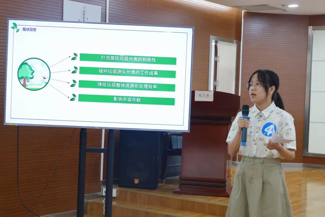 经过一个月的实习,同学们似乎对垃圾分类有更多的话想说,在现场汇报的四个小组中,另三组同学都选择了这个主题。