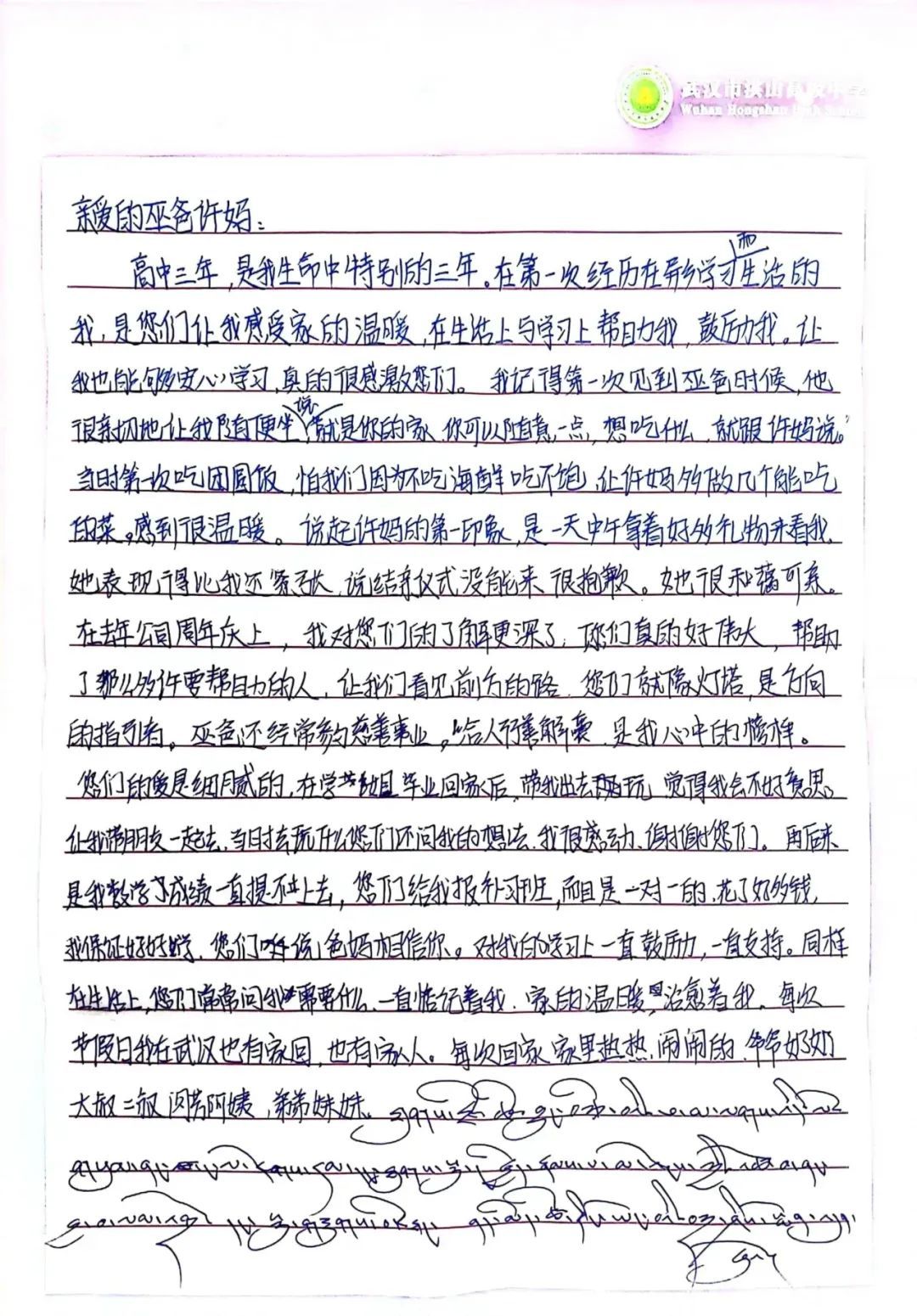 她回忆:“那天,巫叔叔把我送到了学校,陪着我报到。许阿姨帮我买了被子、蚊帐、脸盆、衣架等,帮我置办齐了生活用品。”