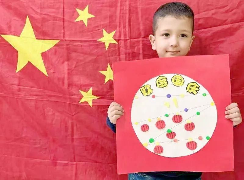 △石榴籽公司员工阿卜杜买买提把孩子接到内地上学,这是他孩子吾麦尔自己创作的“欢度国庆”手工