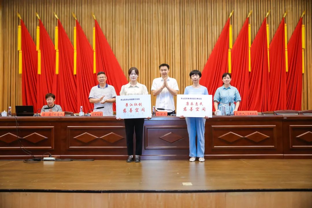 9月6日上午,洪山区第九个“中华慈善日”活动启动。来自区相关职能部门、各街乡、社区及慈善组织的200余名工作人员共同学习新修改的《中华人民共和国慈善法》,和平街道获颁第三届“湖北数字公益节”荣誉证书,洪山区首批社区慈善空间——张家湾街道三桥社区“康乐惠民 慈善空间”、洪山街道景江社区“景江社创 慈善空间”正式授牌。