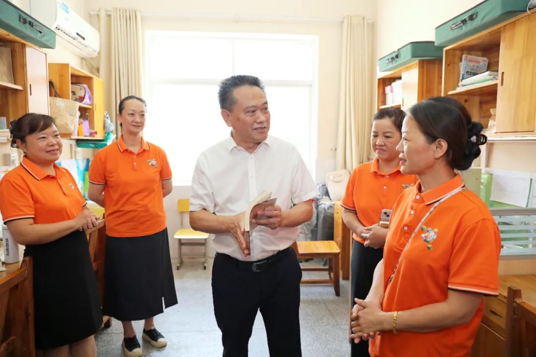 林文书一行先后走进鲁巷实验小学和洪山高中,参观校园环境,调研办学成果,慰问学校教师,并在洪山高中与吴小芳、李金雪、李爱芳、田祥生、杨帆、李桢、廖蓉、张同祥、张春晖等全区优秀骨干教师代表座谈交流,询问他们的教学研究工作和生活情况,勉励大家以更加奋发有为的精神状态投身教育事业,探索更多有利于促进学生德智体美劳全面发展的教育实践,守护学生的身心健康,当好学生成长的领路人。