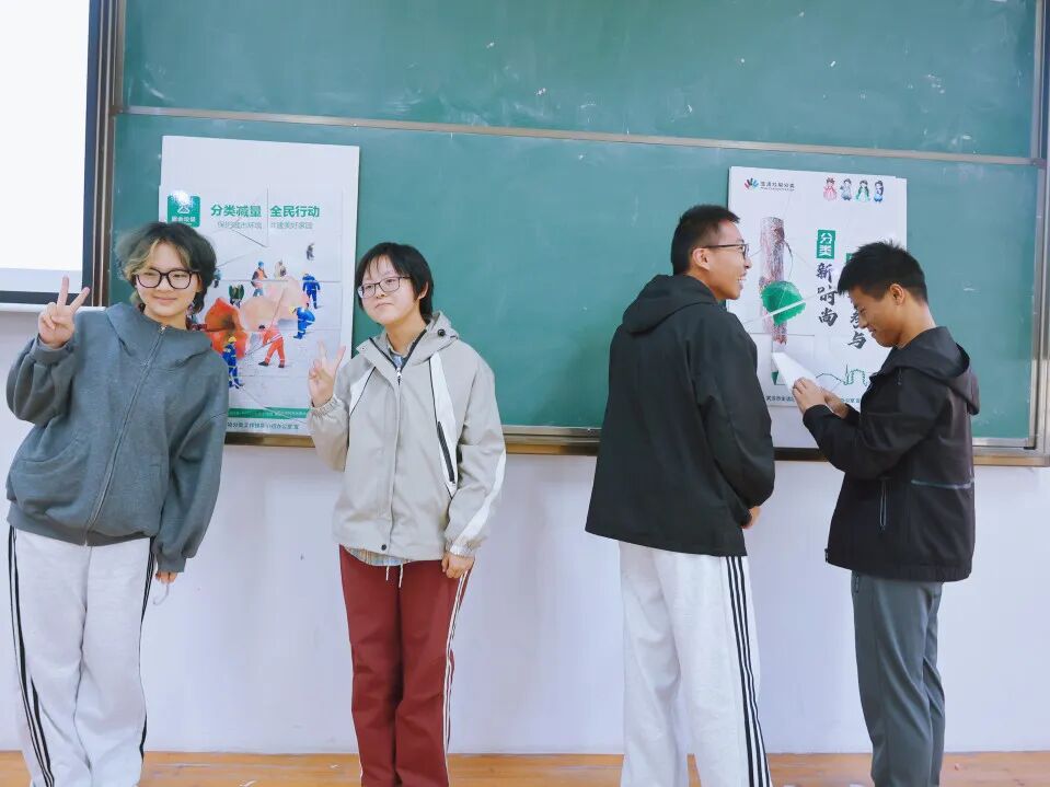 画架拼图游戏中,同学们需将垃圾分类主题海报拼图完成后拼贴在画架上,每次游戏由两组同学PK,共比拼三轮,在规定时间内,最快且最准确地完成拼图的队伍获胜,其中,在5分钟内完赛的同学均可以现场抽取盲盒,领取垃圾分类小礼品。活动现场,气氛活跃,每支临时组成的队伍还气势高昂地取了队名,“一等奖队”“抽盲盒队”“垃圾分类王者队”,仿佛都对比赛势在必得。比赛开始后,同学们各显神通,发挥奇思妙想,成功将一幅幅垃圾分类主题海报还原,赢得了连连的掌声。