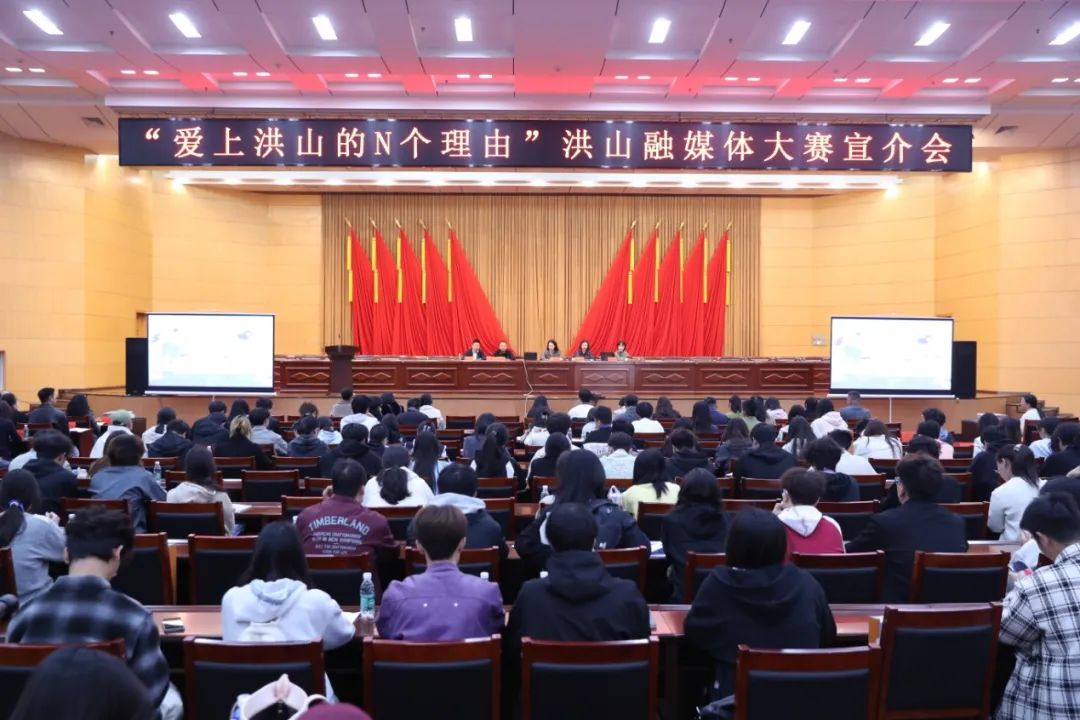 10月27日上午,“爱上大学之城的N个理由”洪山融媒体大赛宣介会在区人民政府会议中心第一会议厅举行, “洪镜头”城市摄影队参赛队员、28所高校的团体报名师生、区文旅体育局、团区委、区商务局及区各街道、社区负责宣传工作的同志等300余人参加会议。